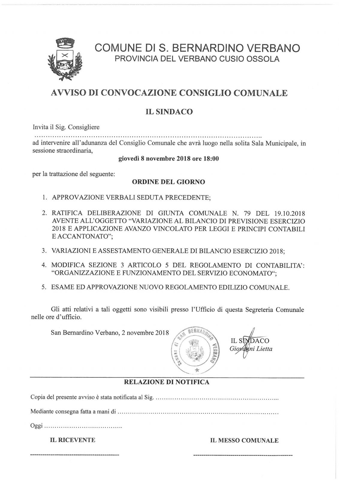 - AVVISO DI CONVOCAZIONE CONSIGLIO COMUNALE[.pdf 308,05 Kb - 05/11/2018]
